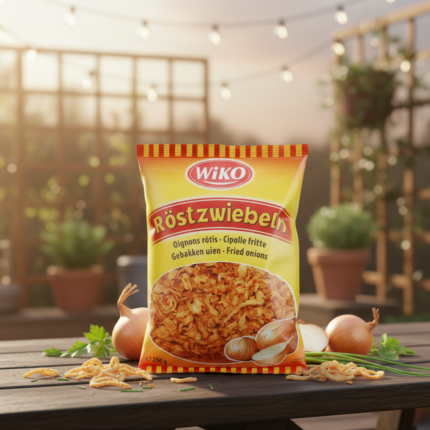Oignons rôtis WiKO : Le croquant irrésistible pour sublimer tous vos plats. Donnez une touche gourmande et croustillante à vos repas avec les Oignons rôtis WiKO (Röstzwiebeln). Ce sachet de 250g contient des oignons soigneusement sélectionnés, frits pour obtenir une texture dorée et un goût savoureux. Parfaits pour accompagner vos hot-dogs, burgers, salades ou plats de pâtes, ils sont l'ingrédient secret pour un relief gustatif immédiat.