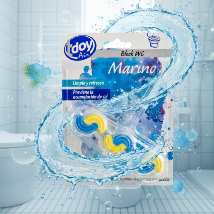 Fraîcheur Océanique ! Bloc WC suspendu Tdoy Air parfum Marin. Formule "Bifasic" (Bifasique) qui nettoie la cuvette, parfume agréablement et prévient l'accumulation de calcaire.