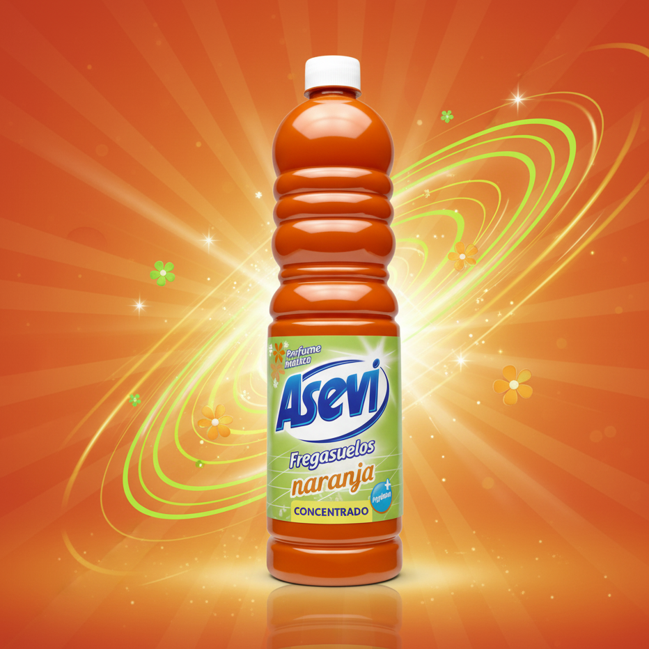 Faites entrer le soleil chez vous ! Le nettoyant sol Asevi Orange élimine la saleté la plus tenace tout en diffusant un parfum d’agrumes énergisant et durable.