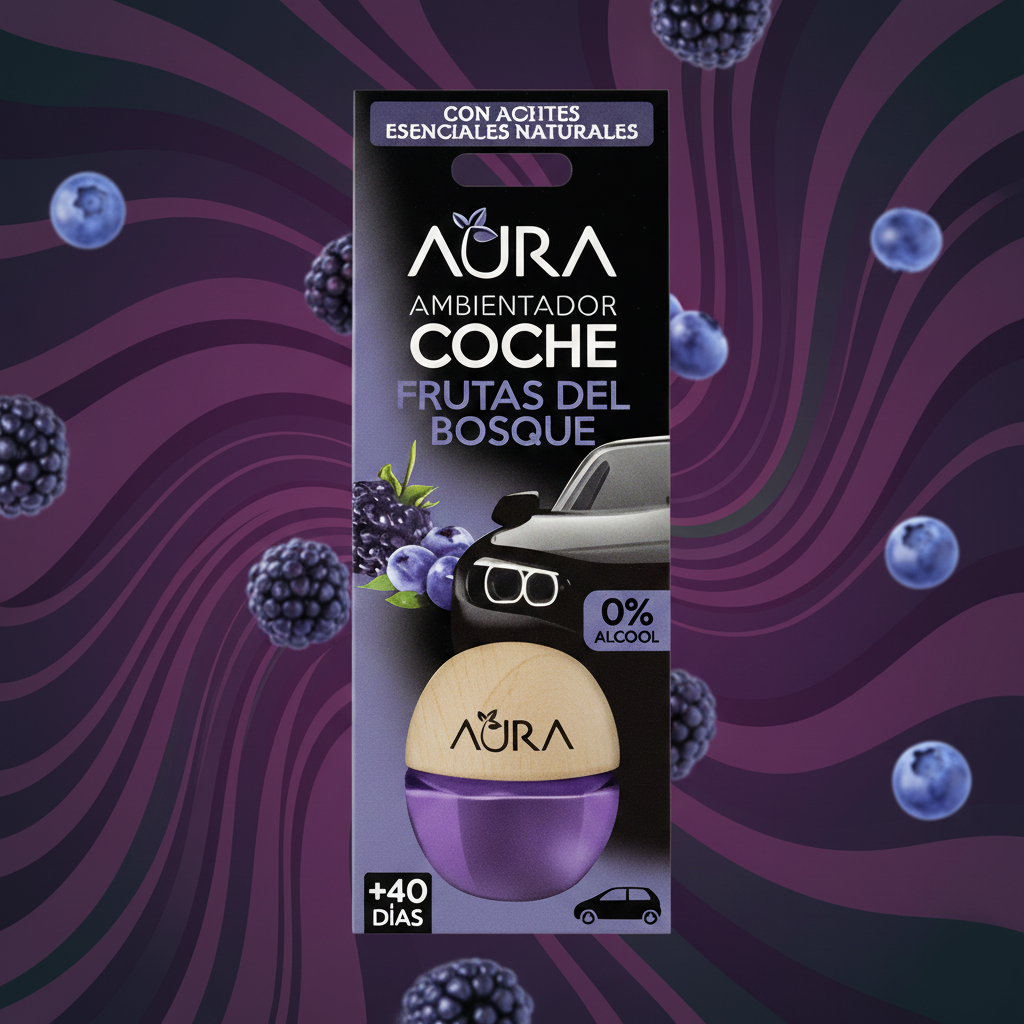 Dynamisez vos trajets avec le Désodorisant Voiture AURA Frutas del Bosque. Sa fragrance gourmande et vitaminée capture l’essence des fruits rouges sauvages (mûres, framboises), créant une atmosphère joyeuse et énergisante dans votre habitacle.