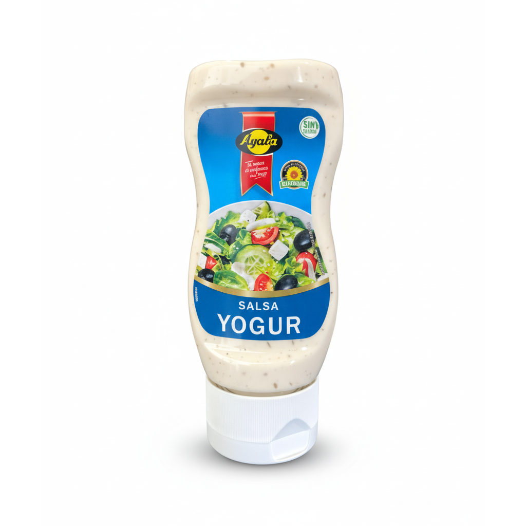La touche de fraîcheur ! Sauce Yaourt (Salsa Yogur) de la marque Ayala. Une texture onctueuse et légère, élaborée à base d’huile de tournesol. Certifiée Sans Gluten. Parfaite pour les salades grecques, les kebabs et les wraps. Bouteille « Squeeze » de 300ml.