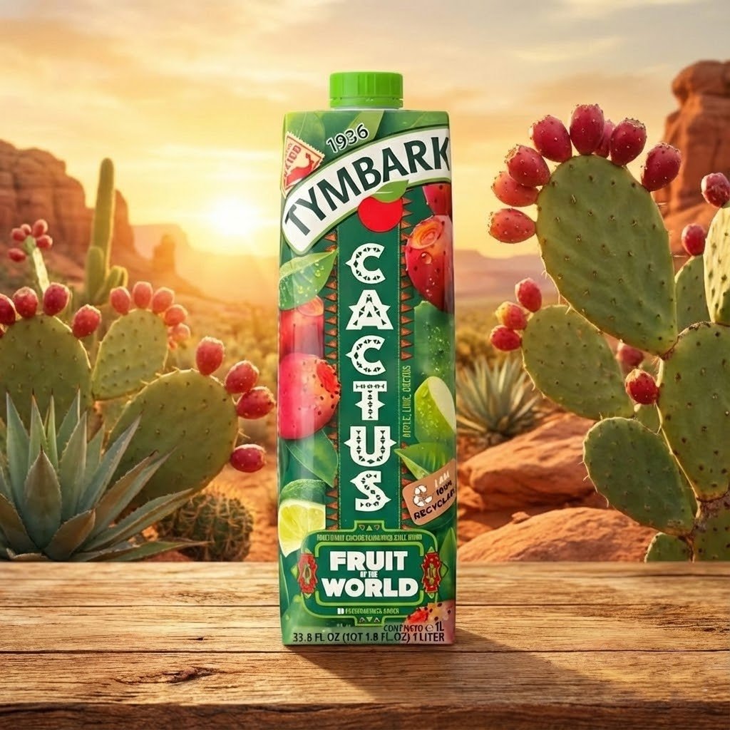 L’originalité absolue ! Boisson au Cactus (Figue de Barbarie), Citron Vert (Lime) et Pomme de la marque Tymbark. Un goût exotique unique, sans conservateurs. Brique de 1 Litre 100% recyclable.