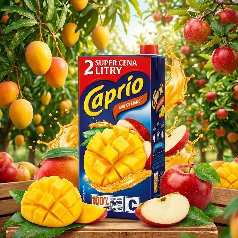 Offrez à votre famille une évasion tropicale avec le « Caprio Mangue-Pomme ». Ce jus marie la texture onctueuse et le parfum exotique de la Mangue (Mango) avec la fraîcheur de la Pomme (Jabłko). C’est une combinaison douce qui plaît particulièrement aux enfants. En plus d’être délicieux, c’est un choix sain et économique :