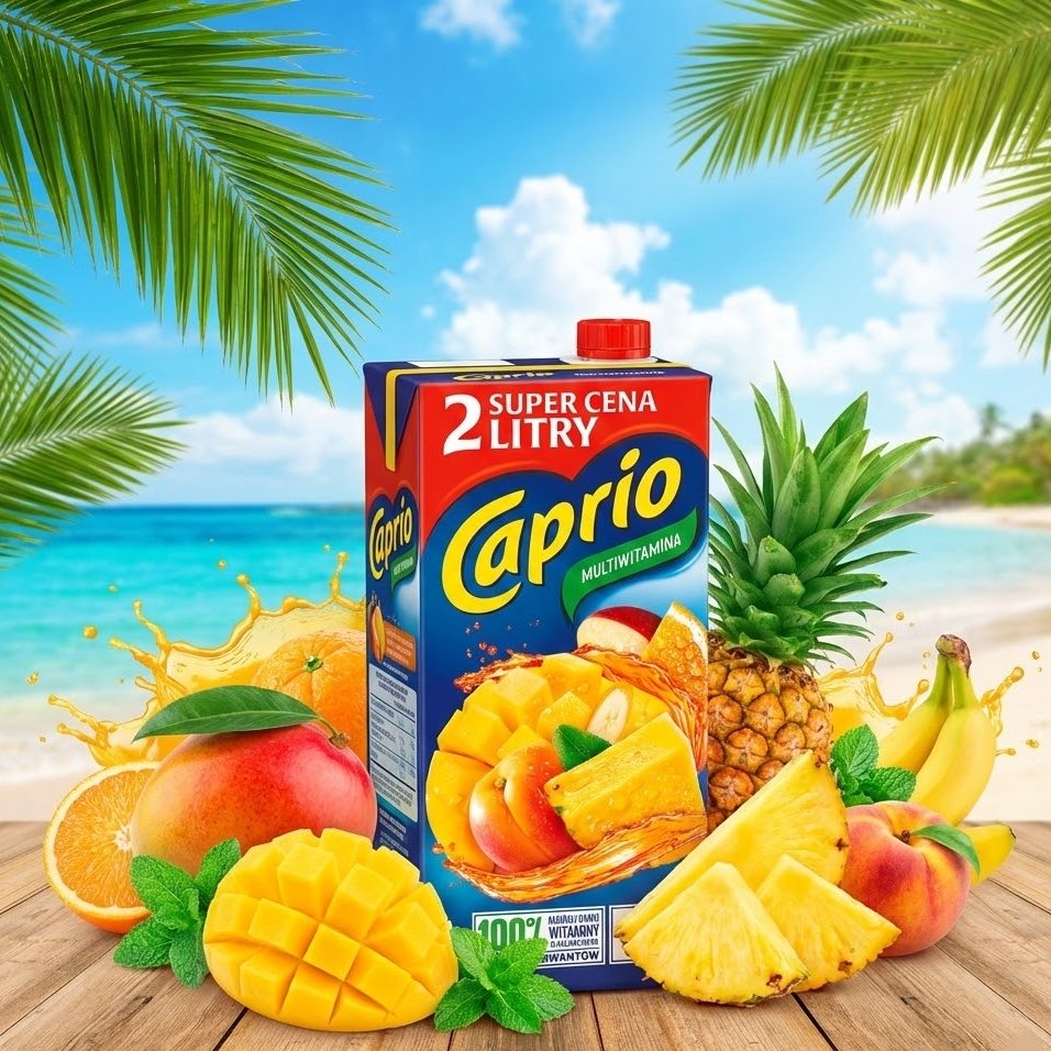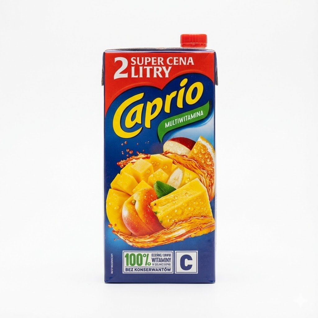 Faites le plein d’énergie pour toute la journée avec la Boisson Multivitaminée (« Multiwitamina ») de Caprio. Ce nectar généreux est un véritable cocktail de soleil, combinant les saveurs de plusieurs fruits délicieux : mangue, ananas, banane, pomme, orange et pêche. C’est la boisson idéale pour le petit-déjeuner familial, car un seul verre suffit pour couvrir 100% de l’apport journalier recommandé en Vitamine C (« 100% witaminy C »), aidant à combattre la fatigue et à rester en forme. Fidèle à la promesse de qualité Caprio, elle est élaborée sans conservateurs (« Bez konserwantów »). Son format « Super Prix » de 2 Litres (« Super Cena ») offre un excellent rapport qualité-quantité pour les foyers nombreux.