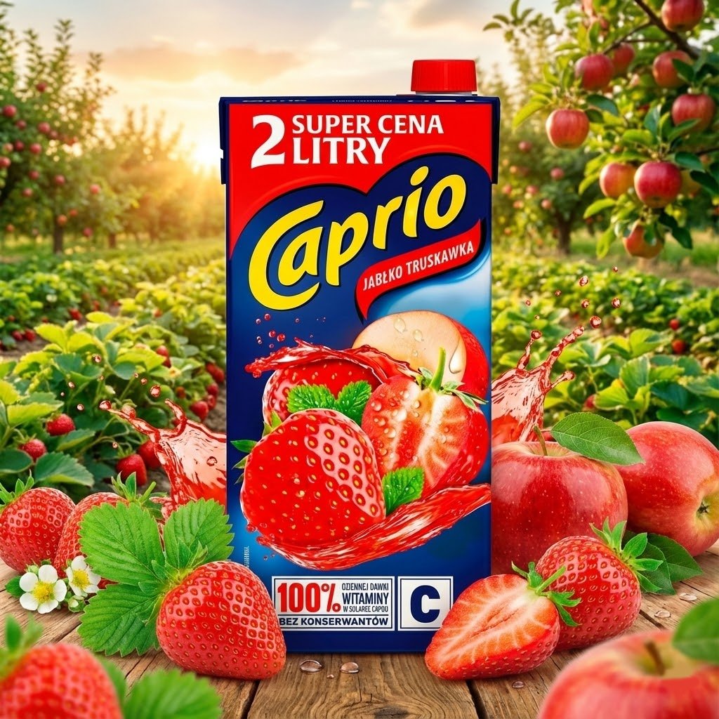 Le préféré des enfants ! Boisson à la Fraise (Truskawka) et à la Pomme de la marque Caprio. Une saveur douce et fruitée à petit prix (Super Cena). Couvre 100% des besoins en Vitamine C. Sans conservateurs. Brique familiale de 2 Litres.