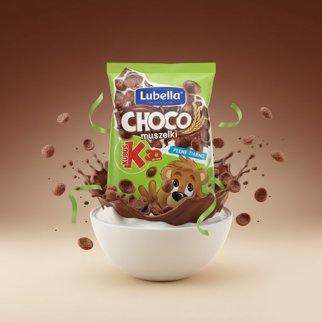 Démarrez la journée du bon pied avec les céréales Lubella Choco ! Riches en grains entiers (Pełne Ziarno) et intensément chocolatées, ces billes et coquillages croustillants apportent l’énergie et la gourmandise dont vos enfants ont besoin. Un classique du petit-déjeuner, sain, nutritif et sans compromis sur le goût.