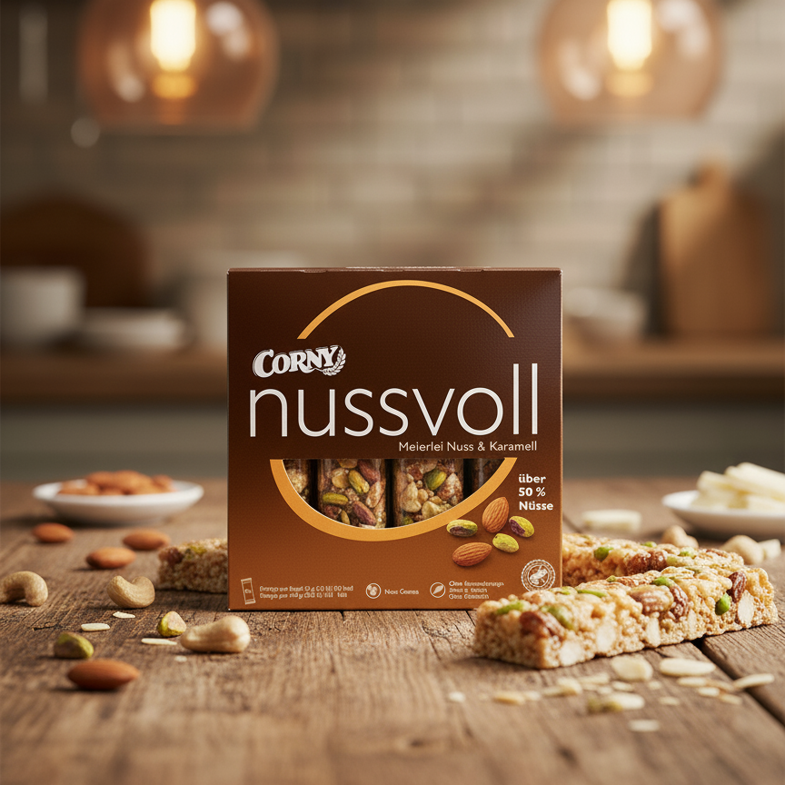 Pour les vrais amateurs de croquant, découvrez Corny nussvoll « Dreierlei Nuss & Karamell » (Trio de Noix & Caramel). Cette barre premium se distingue par sa teneur exceptionnelle en fruits à coque : elle contient plus de 50% de noix. Le mélange savoureux combine des cacahuètes, des amandes et des noisettes entières ou en gros morceaux, associés à de délicieux éclats de caramel fondant. Contrairement aux barres classiques, ici c’est la noix qui est la star, offrant une source d’énergie durable et un goût intense. Préparé sans colorants, sans conservateurs et sans exhausteurs de goût, ce paquet de 4 barres (96g) est l’encas gourmand de qualité supérieure par excellence.