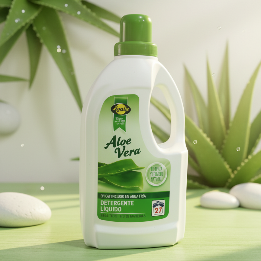 La lessive liquide Ayala Aloe Vera est formulée pour offrir une « Limpieza y Cuidado Natural » (Nettoyage et Soin Naturel). Grâce aux extraits d’Aloe Vera, elle nettoie votre linge en profondeur tout en préservant la douceur des textiles et en respectant les peaux sensibles. Efficace contre « tout type de taches », sa formule agit puissamment même en eau froide (« Eficaz incluso en agua fría »), ce qui permet de protéger les couleurs et d’économiser de l’énergie. Le format de 2,025 litres assure environ 27 lavages de fraîcheur naturelle.