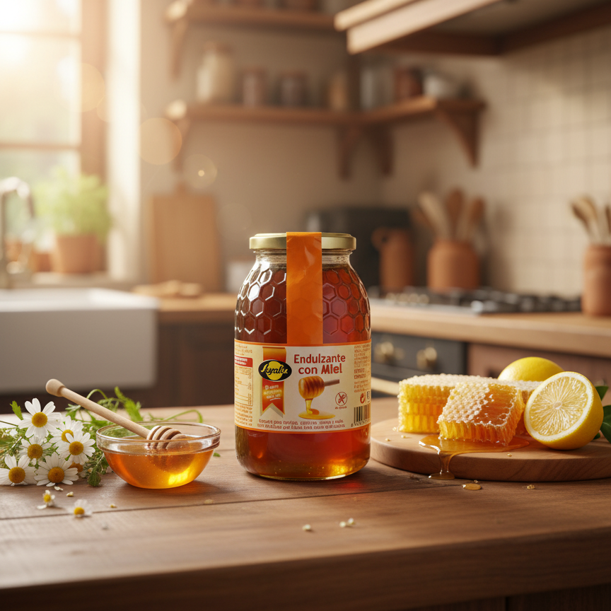Nom : Endulzante con Miel (Édulcorant avec Miel).