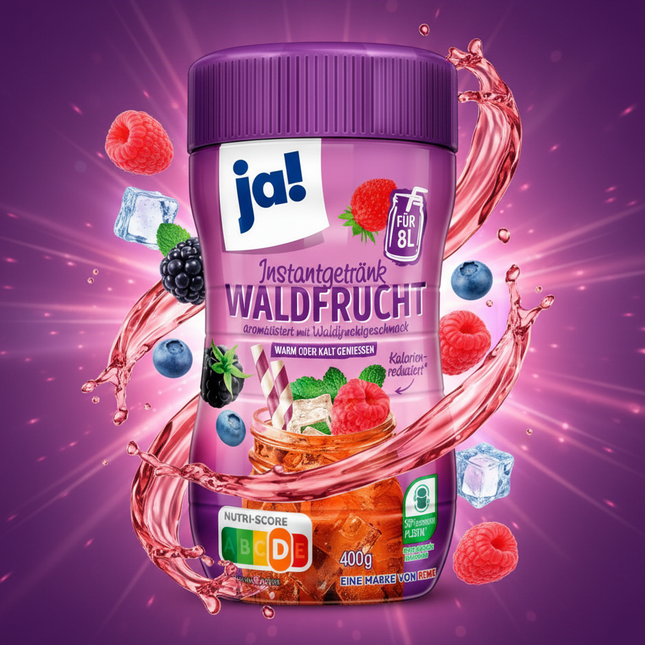 Découvrez le plaisir fruité de la boisson instantanée ja! Waldfrucht. Facile et rapide à préparer, ce mélange vous offre une boisson délicieuse aux notes de baies sauvages, à savourer chaude ou froide selon la saison.