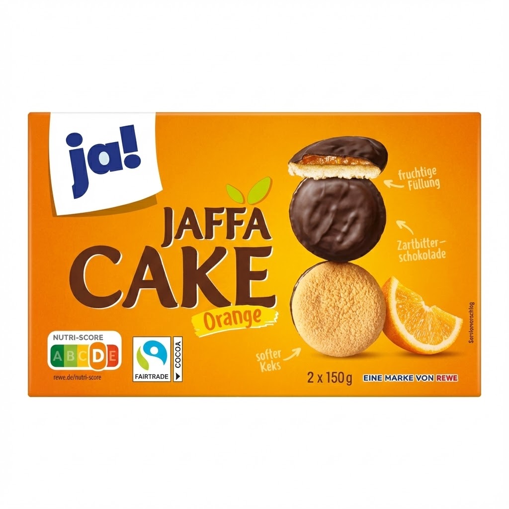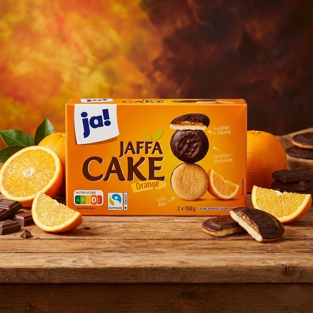 Les « Ja! Jaffa Cakes Orange » sont une friandise intemporelle pour accompagner le thé ou le café. Chaque biscuit offre une expérience en trois textures :