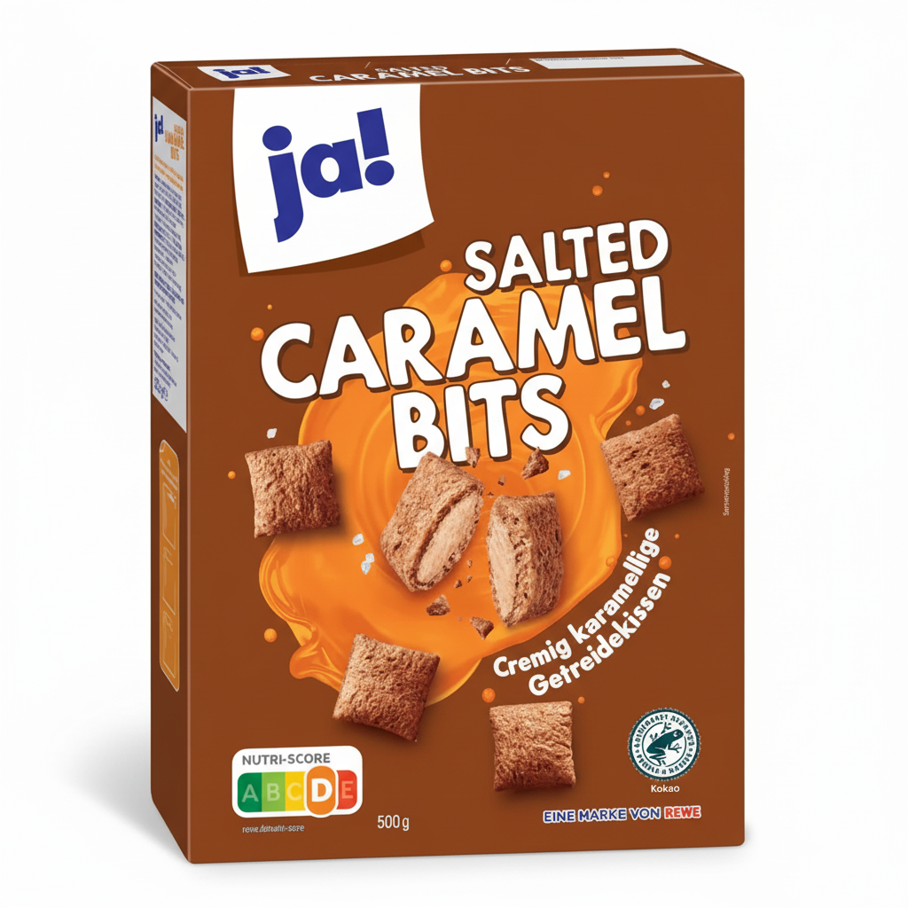 Les Ja! Salted Caramel Bits sont de délicieuses bouchées céréalières fourrées à la crème de caramel salé, offrant une combinaison parfaite entre croustillant et fondant. Idéales pour le petit-déjeuner ou comme collation gourmande à tout moment de la journée.