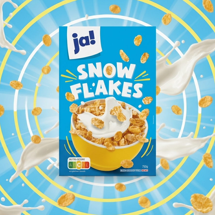 Commencez votre journée avec énergie grâce aux ja! Snow Flakes. Ces délicieux pétales de maïs dorés et croustillants sont délicatement enrobés d’un fin glaçage sucré pour un petit-déjeuner gourmand qui plaira à toute la famille. Un grand format généreux de 750g pour des matins pleins de vitalité !