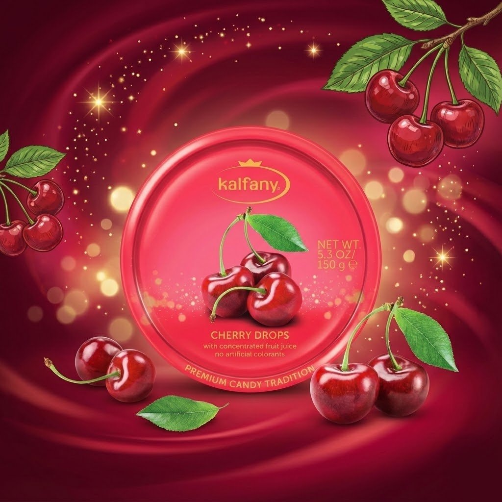 Les amateurs de fruits rouges vont adorer les « Kalfany Cherry Drops ». Ces bonbons allemands offrent une explosion de saveur fruitée grâce à l’utilisation de « concentrated fruit juice » (jus de fruit concentré). Ils capturent le goût sucré et légèrement acidulé de la cerise mûre. Comme toute la gamme Kalfany, ils sont garantis « no artificial colorants » (sans colorants artificiels). La boîte métallique rouge est non seulement élégante (« Premium Candy Tradition »), mais elle est aussi pratique pour conserver les bonbons à l’abri de la chaleur, idéal pour la voiture.