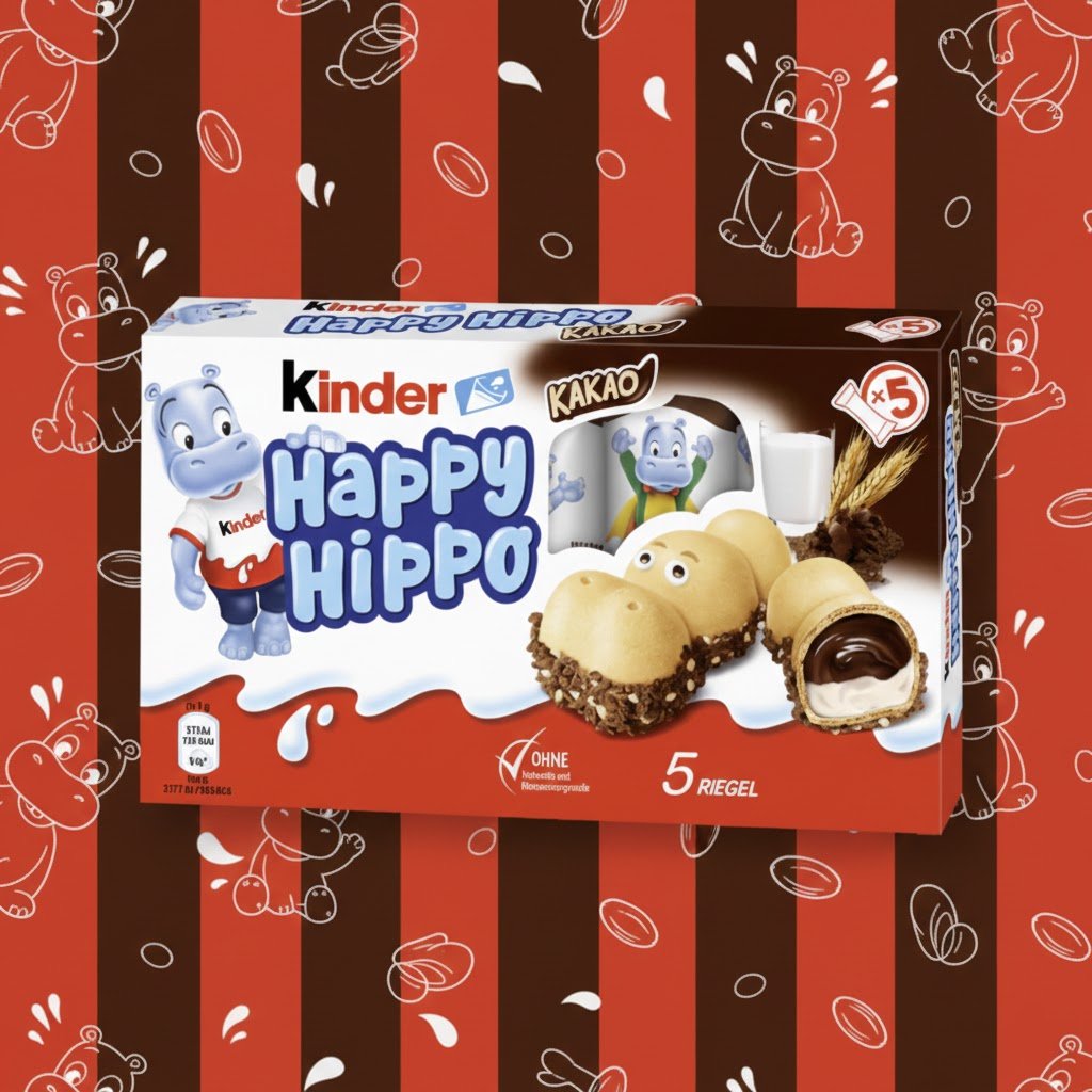 Faites sourire vos enfants avec le Kinder Happy Hippo Cacao. Cette friandise ludique en forme d’hippopotame offre une expérience texturale unique. Sous une gaufrette fine et croustillante, se cache un cœur fondant à double saveur : une onctueuse crème au lait et une riche crème au cacao. Le tout est souligné par une base trempée dans de délicieux éclats meringués croustillants au cacao. La boîte contient 5 barres (5 Riegel) emballées individuellement, parfaites pour un goûter amusant et gourmand. Comme toujours chez Kinder, ce produit est élaboré sans colorants et sans conservateurs (Ohne Farbstoffe und Konservierungsstoffe). Poids total : 103g (environ 20,7g par pièce).