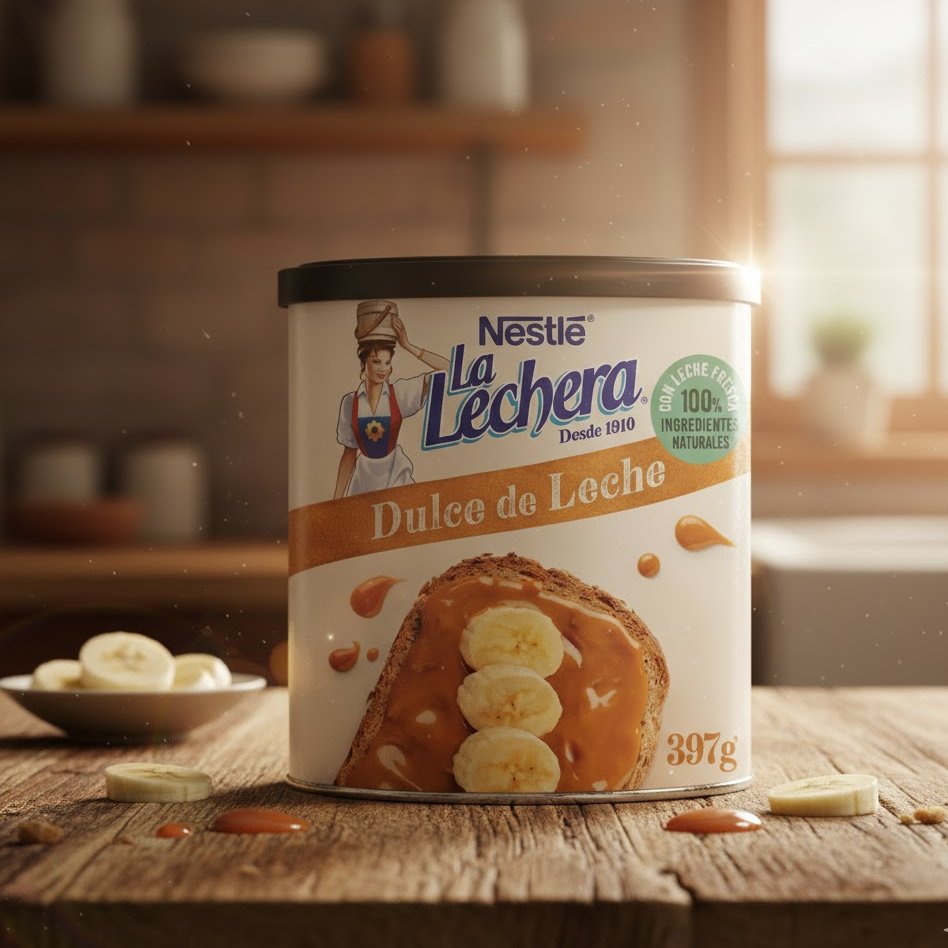 Retrouvez la saveur traditionnelle du « Dulce de Leche » avec La Lechera de Nestlé. Élaboré depuis 1910, ce produit se distingue par sa recette simple et saine : du lait frais et du sucre, mijotés jusqu’à obtenir une couleur caramel dorée et une onctuosité parfaite.