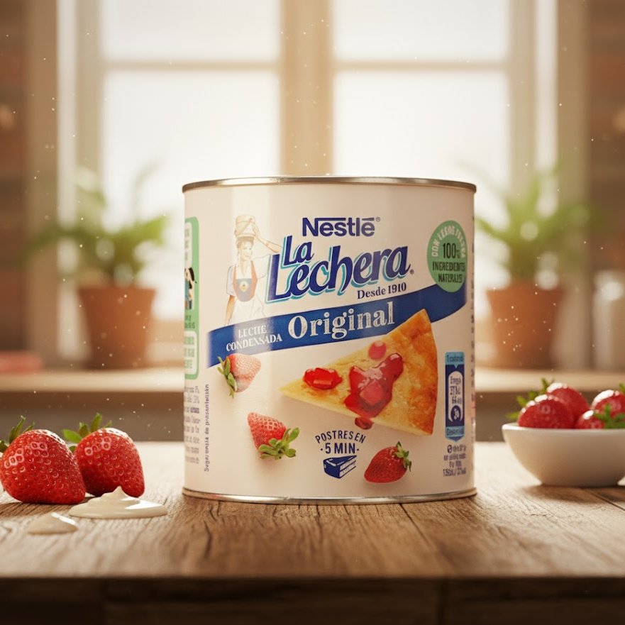 L’incontournable Lait Concentré Sucré de La Lechera. Élaboré avec du lait frais et 100% d’ingrédients naturels. Sa texture onctueuse et sa douceur unique garantissent la réussite de vos desserts, flans et cafés gourmands.