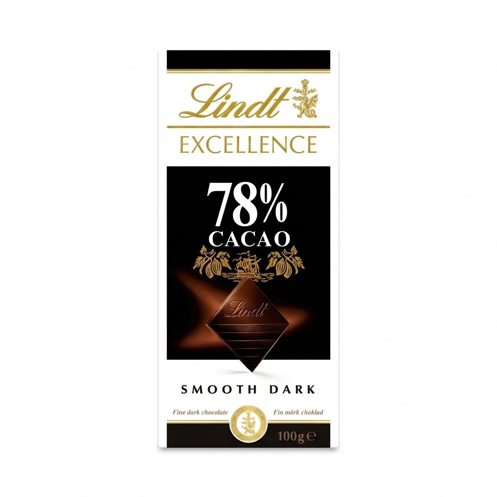 Tablette de chocolat noir Lindt Excellence à 78% de cacao. Une recette « Smooth Dark » qui allie l’intensité du cacao à une texture onctueuse et fondante. Poids : 100g.