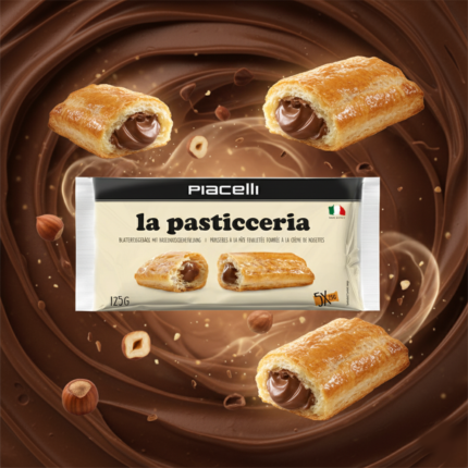 Savourez l'authenticité italienne avec les feuilletés Piacelli La Pasticceria. Une alliance irrésistible entre une pâte feuilletée légère et croustillante et un cœur fondant à la crème de noisettes gourmande. Parfaits pour accompagner votre café ou pour un goûter raffiné, ces biscuits sont emballés individuellement pour garantir une fraîcheur optimale à chaque bouchée.
