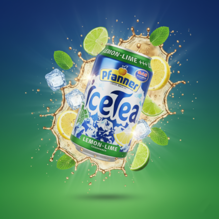 Canette de 330ml de thé glacé Pfanner. Une infusion de thé premium au goût rafraîchissant de citron et citron vert. L'équilibre parfait pour se désaltérer.